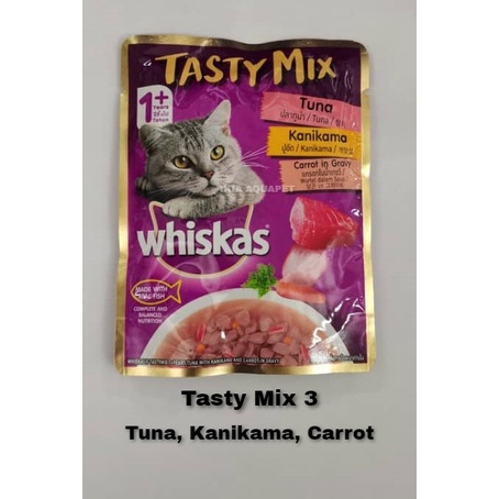 Merek whiskas mengandung vitamin e dan a yang diperlukan kucing.